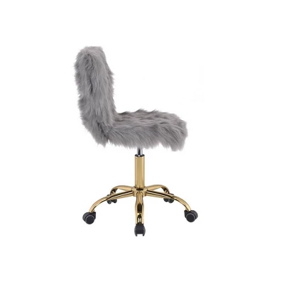 - This office Chair features an adjustable seat height, casters, faux fur fabric upholstery, and a gold base finish.