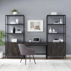 Outfit your office with ease with the Delta Three-Piece Home Office Set from Winsome. This three-piece collection of office furniture comes in black for a sophisticated look, and the collection includes a desk, a three-drawer filing cabinet and a printer stand. Featuring elements of traditional design, this set of office furniture boasts stable, strong construction you can count on, and the simple silver drawer pulls offer the perfect finishing touch. Arrange the items in a row to maximize space, or separate them for a more filled-out look.