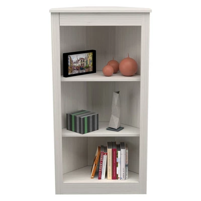 - Contemporary two-shelf corner bookshelf unit keeps your home organized and clutter-free while occupying little space.