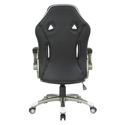 Generate a higher gaming experience with our Xplorer Gaming Chair, designed for hours of focused comfort. Stay in the game with fully padded flip arms, thick foam seat with coil springs, integrated lumbar support and headrest. Dominate the competition with the added edge of quick one-touch pneumatic seat adjustments, locking tilt control and full 360º rotation. Our multi-color accents and perforated air-flow material keeps you cool naturally and cleans up with just a wipe. The 5-star nylon base and dual wheel casters move effortlessly and are designed to standup against dirt and scuffs.
