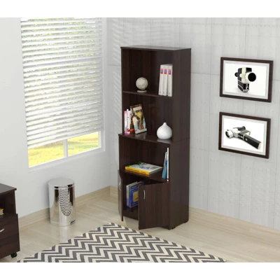 - Bookcase by Inval finished in a rich "Espresso" laminates in durable melamine which is stain, heat and scratch resistant.