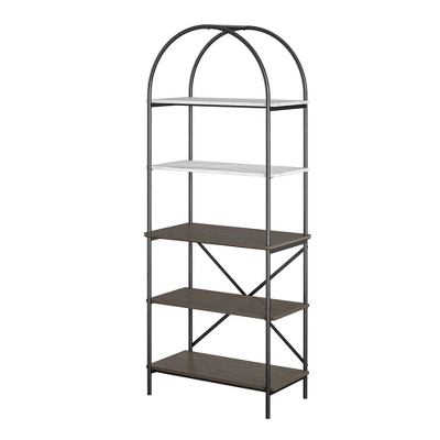 Nab our style for yourself with the CosmoLiving by Cosmopolitan Vivinne Five Shelf Bookcase. Arched frame and modern metal legs give this bookcase top-notch design perfect for any fashionista. Obsessorize on the 5 open shelves that provide ample storage for all of your favorite ~things~. A wall anchor kit is included to secure the bookcase to the wall and prevent tipping injuries. Available in trendy gray, the bookcase is a space-saving dream come true.