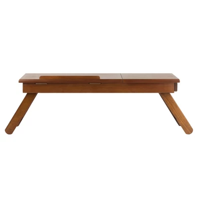 This Anderson Tilt-top Lap Desk is great for working on a sofa, lounge chair, or relaxing in bed with a book or laptop. The Tilt-top has adjustable positioning and a handy lower crossbar that keeps your book or papers in place. Keep your phone, eyeglasses, or a cup of coffee handy on the level right side. The Lap Desk also has a small drawer to hold pens, pencils or flashdrives. Foldable legs make it easy to store. Constructed of Solid Wood in a Teak finish. No assembly required.