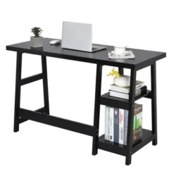 Tangkula Trestle Computer Desk Indoor Office Workstation For Home Office With 2-Tier Storage Shelves