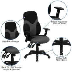 - Tilt Tension Adjustment Knob adjusts the chair’s backward tilt resistance