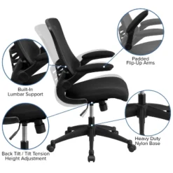 The swivel seat is padded with 5″ of foam and the chair is covered with fabric upholstery. Nylon armrests take pressure off your shoulders and neck. Use the tilt tension adjustment knob to increase or decrease the amount of force needed to rock and recline. Lock the position in place with the tilt lock mechanism. Raise and lower your seat height with the pneumatic seat height adjustment lever, conveniently located below the seat. The heavy-duty, nylon base with dual wheel casters makes it easy to roll across the floor.