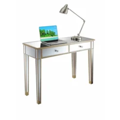 Reinvent any home office or study with this chic contemporary 1 drawer, 1 shelf desk. Sleek and sophisticated, its construction features generous hidden and open storage with metal tube legs adding classic vintage style. Care Instructions: Dust regularly with a soft, dry cloth. Never use oiled or treated cloths on lacquered finishes. Some finishes can be wiped with a damp (not wet) cloth, followed at once by rubbing with a dry cloth to remove fingerprints and smudges. For persistent spots, gently clean with a soft cloth and a solution of water and mild soap, make sure to wipe dry. Use adhesive felt pads, coasters and placemats to protect your furniture.
