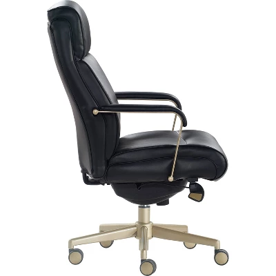Fitting with your modern lifestyle, the Melrose Executive Office Chair showcases clean lines, contemporary color and overall city sensibility. Smooth bonded leather offers sleek seating, while maintaining a high-end look. Set on a copper-finished wheeled base, this office chair moves with ease from a day of work at your desk, to your living room for a night of gaming. The ergonomic design, full cushion foam and adjustable lumbar support keep you comfortable and energized through every moment. Ergonomic and adjustable, this La-Z-Boy office chair allows you to control the height, tilt and lift to suit your sit positioning and give you an optimized body alignment. La-Z-Boy office chairs are designed to put your comfort first with quality that’s built to last so your work day is always engaged and productive. No wonder we’re the industry standard for comfort and style.