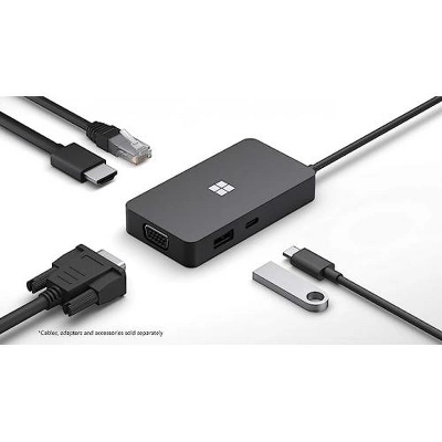 All the connections, wherever you are Surface USB-C Travel Hub for Business gives you five ways to stay productive. Connect to the internet, project content onto a big screen, charge accessories, and more. Well-connected Stay productive wherever you are with this multi-port adapter that includes USB-C with pass-through charging, USB-A (3.1/Gen2), VGA, gigabit Ethernet, and HDMI 2.0 with 4K video out at 60Hz. Conveniently compatible Surface USB-C Travel Hub for Business is compatible with modern PCs and all Surface laptops with a USB-C port. It supports compatible accessory charging but does not support laptop charging.