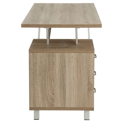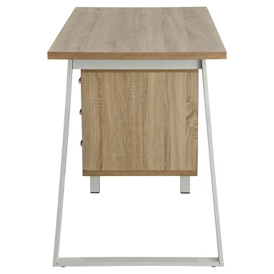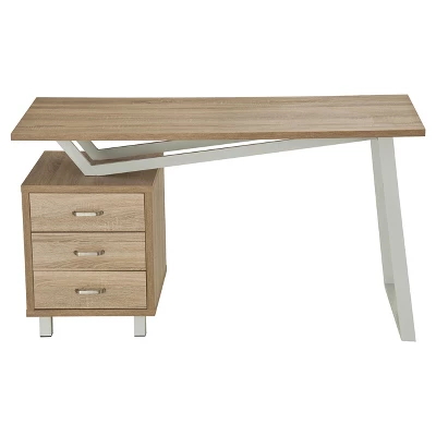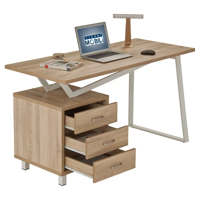 This Techni Mobili Computer Desk allows you to decorate your room or office in a sleek way with it’s asymmetrical and angular accent style. There’s plenty of work space for writing or computing and 3 drawers to provide optimal storage organization. The three drawer cabinet is interchangeable from left to right. This stylish desk is made of MDF Panels with PVC veneer atop powder coated steel frame. Color: Sand