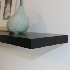 48″ Slim Floating Shelf Wall Mounted Hidden Brackets Black – Inplace