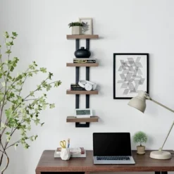 36″ X 11″ 4 Tier Ladder Bracket Floating Wall Shelf Unit – Danya B.