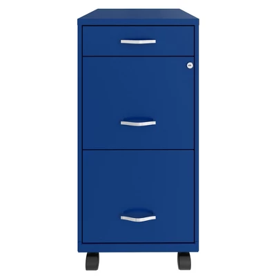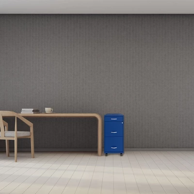 Holding all your important documents, the 3 Drawer Mobile File Cabinet by Space Solutions gives you some peace of mind by securing your sensitive files.Compact and designed for smaller office spaces, the cabinet is sure to fit in your home office, perfect for home file organization. Ample storage space and patented glide suspension make for easy storage and transportation of documents. The 4 rolling wheels let you maneuver the files wherever they’re needed with ease. A built-in cam lock secures the 2 top drawers, ensuring your sensitive documents are safe from prying eyes. Each drawer opens to 3 quarters of its full length for easy access to the interior. Built with 2 large drawers and a top pencil drawer for 3 drawers in total, the cabinet holds letter-sized hanging files, efficiently organizing tax and legal documents, paperwork, and other items.Perfect for home offices and smaller business spaces, secure and store all your sensitive documents in the Space Solutions 3 Drawer Mobile File Cabinet.
