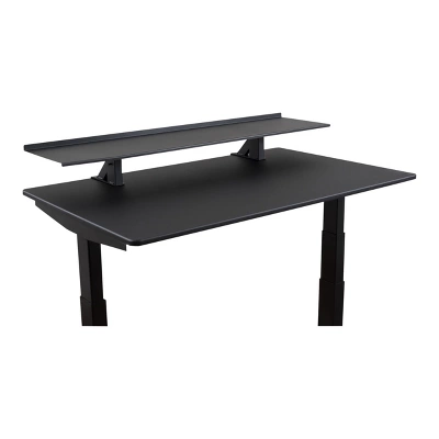 The Stand Up Desk Store Clamp-On Adjustable Height Desk Shelf Monitor Stand reduces clutter on your standing desk while placing your monitors at a comfortable height. Features include easy, tool-free attachment to the rear edge of your desk and adjustable height for personalized ergonomics. Available in 30″, 48″, and 60″ widths as well as a 120-degree version. 60 lb. weight capacity. Made of powder-coated steel. 5-year limited warranty against defects. Stand Up Desk Store is based in the suburbs of Chicago.