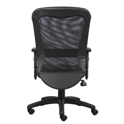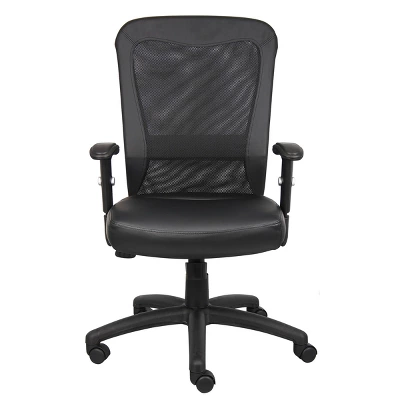 The Web Chair is the perfect blend of a comfortable and professional design. The chair itself is created with a mesh backing for ultra-breathability, while the seat is designed with a solid, classy .black LeatherPlus material/ The chair boasts a sturdy 27 inch nylon base with 2 inch dual wheel castors for a smooth roll and has a weight limit of 275 lbs. The chair has adjustable arms and with a pneumatic gas lift, it has an easily adjustable height as well. The chair also features tilt tension and an upright lock.
